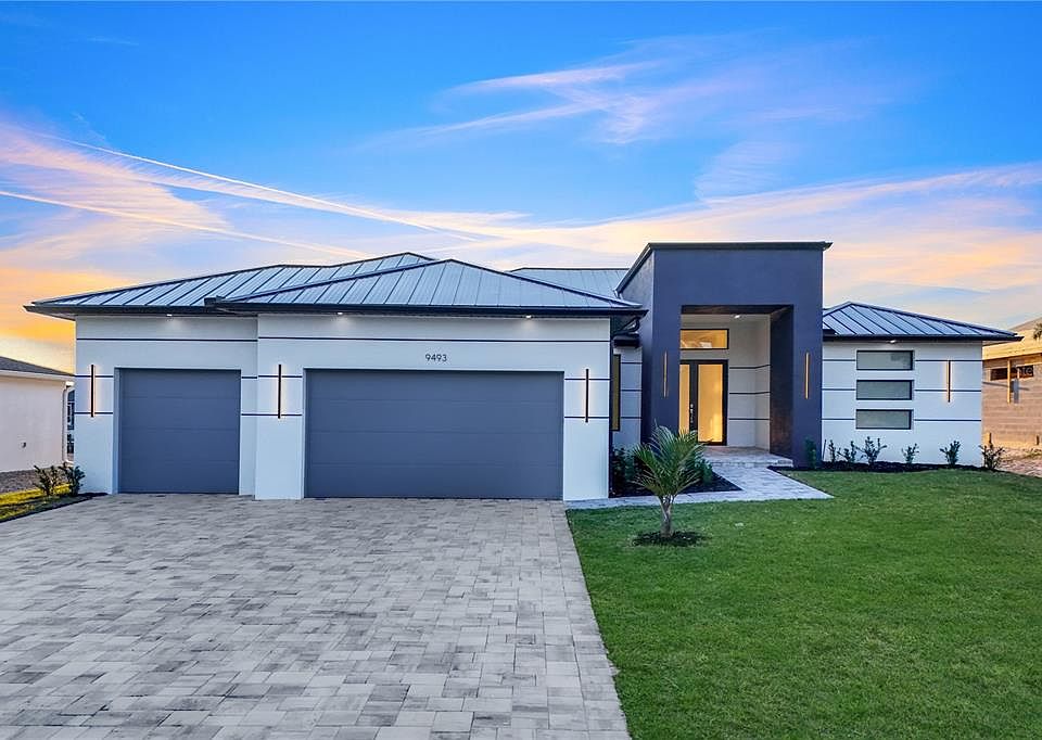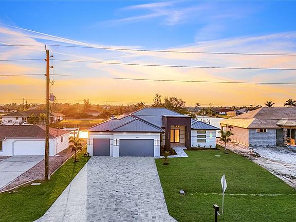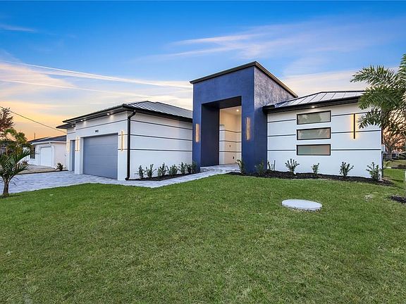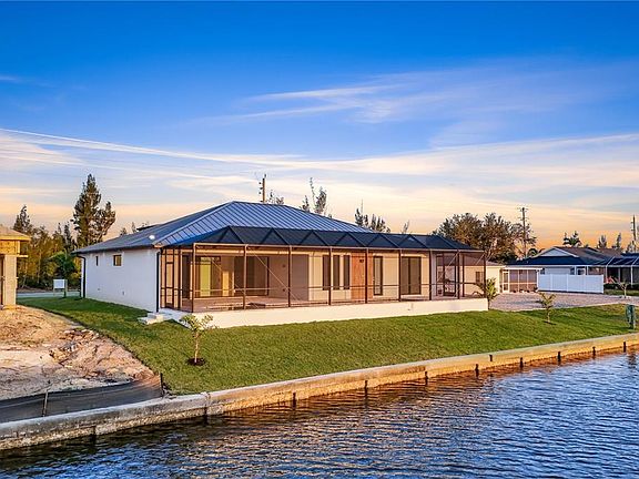 2025 NEW HOME, waiting for its first owner. Builder has spared no expense on this stunning Gulf access WATERFRONT POOL HOME. This amazing 2,446 SqFt. luxurious home, boasts 4 bedrooms, plus 1 office with glass double doors, 3 full bathrooms, and an amazing, fully equipped outdoor kitchen with all top-of-the-line appliances. The pool overlooks the canal, where you could have your boat moored along the 80-foot seawall. Easy access to the open water and the Gulf will be a plus for every boating lover. There is plenty of space in your enclosed outdoor pool area for entertaining guests. The pool features a spa sitting area, outdoor shower, and LED pool lighting. The open floor plan offers you a majestic, luxurious space, adorned with an oversized porcelain tiled floor throughout. The Great Room features a coffered high ceiling with LED lighting, an 86-inch Samsung flat TV, and a modern electric fireplace. LED strip lighting in the entryway for a touch of sophistication. The Kitchen is a chef's paradise with all top-of-the-line Whirlpool appliances. European-style self-closing cabinets contrast with the elegant quartz countertops. For your peace of mind, this house features a metal roof and impact windows, and doors. Looking for a perfect place to call home? This move-in-ready home awaits you in the much-desirable South Gulf Cove community.