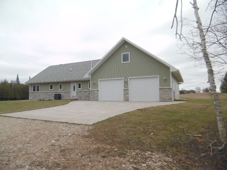 Country Living at It's finest! Beautiful Custom Home built in 2015. Home is nestled on 40 Acres, 15 Miles from Escanaba. 30 Acres are wooded and 10 acres are open for watching the wildlife while sitting on your back porch. Home features: 3 Bedrooms, 3 Baths and large family room over-looking the main floor. Home has main floor laundry with plenty of storage. Nice inviting front foyer with a closet for hanging your coats. Kitchen features: beautiful birch cabinets with Cambria countertops and all Kenmore. Elite stove, refrigerator, micro hood, and dishwasher included. There is a custom built fireplace with Quadra-Fire insert with wood storage box coming from the deck so there is no mess in the house. Home has central air conditioning. Home features all Pella Double Pane windows, patio doors off the master bedroom and living room leading to the wrap-around covered porch with maintenance free Trex deck. There is a nice pond that is about 9 feet deep. House is wired for a hot tub on the deck with 220. Huge attached garage also wired for 220 and has a Modine heater, two overhead doors, and an overhead utility door. There is propane line under the deck for permanent grill placement. Home has a deep crawl space with cement floors, air exchanger and power vent for furnace.