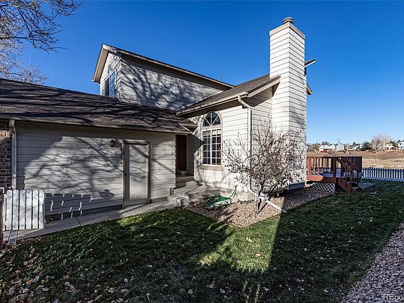 Rare opportunity to own a wonderful 3-bedroom home backing to open space in Highlands Ranch! In pristine condition with a bright, open floor plan, fresh paint/carpet throughout, luxury vinyl tile on main. The main floor features vaulted ceilings, a beautiful living room with high window & cozy fireplace, opening to the kitchen. Separate space can be used as family room, dining room or office. The kitchen has eat-in space, a pantry, ample counter/cabinet space and Stainless appliances. Right off the kitchen is the deck with access to the fully fenced back yard and spectacular views. The upper level offers 3 bedroom, including a spacious Master, walk-in closet with access to the shared full bath. You'll have plenty of room to expand with a full unfinished basement (705 sq ft) stubbed for bath and laundry--plenty of space for a rec room, bedroom & bath. The back yard has a white picket fence with access gate to open space, perfect outdoor area for kids and pets to play. Great location close to miles of trails (around the corner is the Highlands Ranch Foothills Trail), parks, shopping, schools, bus and light rail. Walk your kids to school just up the street at Bear Canyon Elementary School. Plus enjoy all the benefits of HRCA with 4 rec centers, indoor/outdoor pools, fitness classes and more!