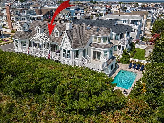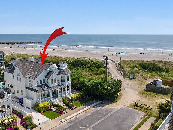 Beautiful North end Avalon oceanfront retreat offering 110 feet of coastline and sparkling in-ground pool! Enjoy the sound of crashing waves from this three-story home situated on a 60’ X 110’ lot featuring five bedrooms, three full baths and two half baths. As you enter the house you are greeted by a large foyer and sweeping stairwell leading to the second floor. The first floor offers three generous sized bedrooms, two with sliders leading out to the patio, two hall baths, laundry room and large family room. The main living space is located on the second level and is an open concept boasting gorgeous ocean views from every angle, soaring ceilings and a gas fireplace for chilly nights. The kitchen includes Corian countertops, high end appliances and a bar providing additional seating, the perfect spot for a quick bite! The living room has a wet bar with an icemaker and two dining areas making it ideal for entertaining! Enjoy happy hour out on the large wrap around second floor deck while you watch the waves roll in! The spacious master bedroom is also housed on the second floor and features a private deck, as well as a huge master bathroom with walk in shower and jacuzzi tub! The master bedroom has an adjacent office/sitting room, great for working from home. On the third floor you will find the fifth bedroom and a half bath. You can go to the beach in the morning and spend your afternoons relaxing by the heated in-ground swimming pool. The attached one car garage offers plenty of room to store your bikes and beach gear. There is off-street parking for four cars. Located just a short walk or bike ride from the center of town, shopping and local restaurants!