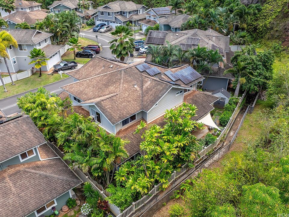 Pet Friendly 3-bedroom, 2.5-bath, 2-story Home, hidden in Lush Launani Valley. Welcome to Woodcreek Crossing, a quiet Planned Urban Development with a playground, private road, guest parking, and a mixture of Single Family / Duplex homes tucked alongside Waikakalaua Stream. This thoughtfully layed out space on a perimeter lot has a livingroom and kitchen that opens up to rich rainforest views. Convenient half bath off the garage entry. Fenced yard is perfect for added privacy. Guest Parking located nearby if the 2-car garage and 2-driveway stalls aren't enough when entertaining. Minutes to Schofield Barracks, Wheeler AFB, Freeway Access, Shopping, Restaurants, Gym, Golf, and Markets. Centrally located for commutes town-bound, and quick drive to iconic Dole Plantation, Historic Haleiwa Town, and famous North Shore Beaches. Valley AOAO has additional recreational areas for use including parks, jogging paths and tennis/basketball courts. First time on the resale market. More pictures to come. First showing at Open House Sunday, Nov 2nd, 3:00-6:00pm.