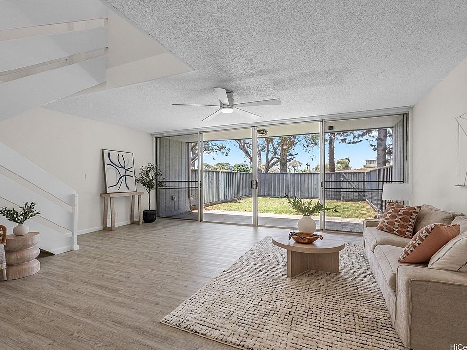 Beautifully renovated corner unit at Mililani Garden Homes 1 with 100% hurricane coverage! This spacious 2-story townhome feels like a single-family home, with neighbors on only one side and a private fenced yard that opens to a park. Modern upgrades include luxury vinyl flooring, quartzite countertops, stainless steel appliances, mirrored closet doors, newer lighting, and a landscaped lawn with automatic sprinklers. Thoughtfully designed with 3 bedrooms, 2 full baths upstairs, half bath laundry room with side-by-side full size washer / dryer and separate dining and living room areas on the main level. Enjoy seamless indoor-outdoor living with a fenced lanai perfect for pets, BBQs, and gatherings. Enjoy a covered carport and an additional assigned stall. Located next to Mililani Rec Center 1 with a 10 ft deep lap pool, water slides, jet spa and more! Convenient access to shopping, dining, golf courses, parks, and all 7 Mililani recreation centers—experience the best of island living!