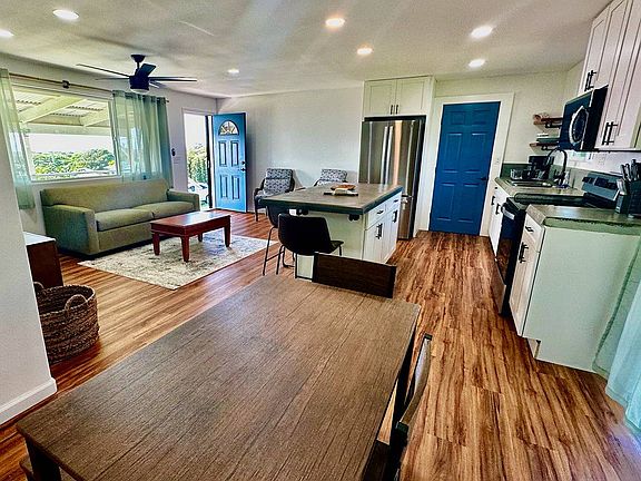 Beautifully remodeled 3/1.5 home in Na'alehu with an Ocean View!!<br>Owners have completely redone this home and put in much time and care that can been seen in all the details!<br><br>*New Luxury Vinyl flooring throughout<br>*Brand New Stainless Steel Appliances<br>*New Cabinetry in Kitchen and Bathroom<br>*Custom Concrete Countertops in Kitchen and Bathroom<br>*New Kitchen Island with Concrete top<br>*New tiled Shower and Vanity<br>*Newly installed Recessed Lighting <br>*Remote Controlled Ceiling Fans in every room<br>*Front and Back lanais<br>*Covered Carport<br><br>Convenient location to all Na'alehu has to offer with its restaurants, coffee shops, hardware store and more. Only a block away from Na'alehu Elementary. Come and enjoy this stunning home!<br><br>Please note this property has a nice buffer between it and the neighboring property as there is an access road to separate them which goes to the acreage behind this property. This is unique to the subdivision, but it is a nice advantage to have that extra space that is currently unused.<br><br>Outside bathroom in garage with shower and toilet is unpermitted but definitely an extra perk!!