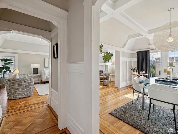 Welcome to this spectacular top floor corner condominium in a highly coveted north of Lake Street location. This house-like Edwardian home gets an abundance of natural light and features 3 BRS, 2 full baths plus an office. Large scale public rooms invite entertaining, and the ideal floor plan separates the public rooms from private spaces. The elegant living room and gracious formal dining room feature classic architectural details: crown moldings, inlaid hardwood floors, leaded glass windows, a box-beam ceiling and wood burning fireplace. The impeccably remodeled kitchen features honed Calacatta marble counters, Ann Sacks tile backsplash, stainless Viking appliances, an appliance garage/coffee station, and a bar area with wine fridge. The serene and spacious primary bedroom has outlooks to the south and west. There are two additional bedrooms and a generously sized office. The two full bathrooms have been remodeled with marble and subway tiles. There is an in-unit washer dryer, a private garage, and a large storage area. 6-unit building located at on a quiet cul-de-sac at the corner of 6th Avenue and Lake Street, which is now a permanent Slow Street.'' Excellent proximity to Mountain Lake Park, the Presidio, Sacramento and Clement Streets.