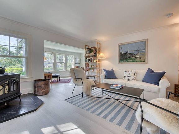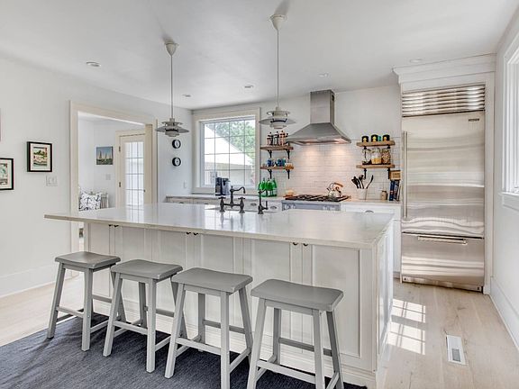 Rental Registration #: 23-224 This recently renovated and impeccably designed property is located .5 miles from the center of East Hampton Village and 1.5 miles from the ocean beach. Upon entering the home to your left you will find the formal living space with a separate office alcove. To the right of the central staircase is a second living area adjacent to the professional chef's kitchen and dining room. SubZero refrigerator, gas burner Miele oven, oversized farmhouse sink and generous quartz island with plenty of prep space are perfect for entertaining. A mudroom with washer and dryer, one of the four bedrooms, and a full bath with radiant heated floors finish off the first level. The second level has not one but two separate living areas, one with it's own access to a private balcony. The ensuite primary bedroom bath, with radiant heat is accessed through a walk in closet with high end fixtures and marble throughout. The final two bedrooms and shared full bathroom are on this level as well. The third level has a TV room with cozy window seat, a generous office space and three skylights. The grounds of the property are well thought out with both front and back yards. There is a newly installed heated gunite pool, bluestone patio dining area, and arbor covered in wisteria, perfect for outdoor entertaining. Two zone HVAC, additional laundry area in basement, as well as 2 bicycles make this home a perfect summer oasis.
