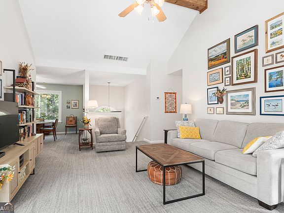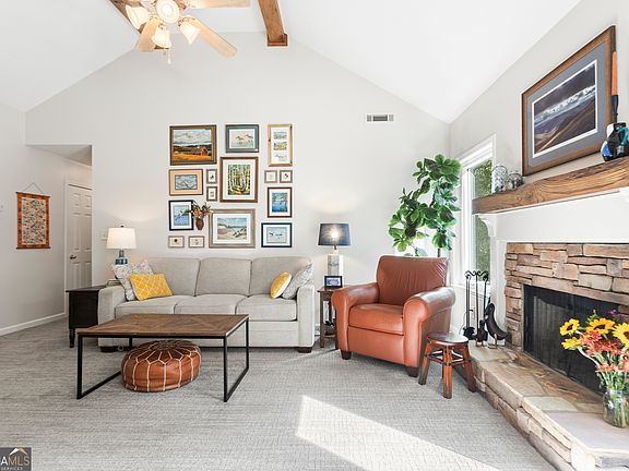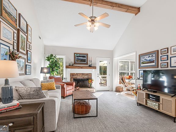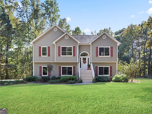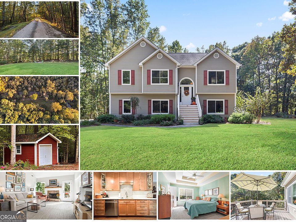 Enjoy all the tranquility and privacy of almost 7 acres of Coweta's best. Secluded home with a manicured home site, fire pit, raised beds, and a lush lawn. Follow the path through the woods to an open field bordered by the twisting and turning Wahoo Creek. This lovingly-maintained and updated home features 4 bedrooms and 3 full bathrooms. Every room is light and bright with gorgeous windows looking out over the property. The totally remodeled kitchen has gorgeous wood cabinets with lighted accent cabinets, under cabinet lights, quartz counters, SS appliances, and custom subway tile backsplash. Living room has wood beams and an updated fireplace. All bathrooms feature new flooring, new quartz counters, and new sinks and plumbing fixtures. Find a separate bedroom, full bathroom, and living room on the garage level. Have morning coffee on the deck or the patio, stroll through the trees to the mailbox, nap in the hammock next to Wahoo Creek, and work on your short game in the back field all less than 15 minutes from Downtown Newnan.