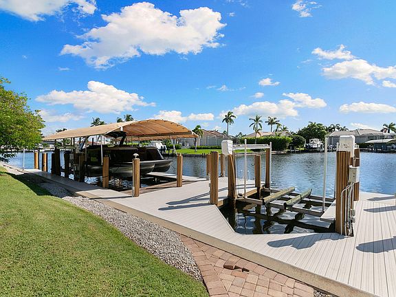 Direct waterfrontDual boat liftsExpansive screened lanaiNewly resurfaced poolTip-lot residenceOpen-concept living spaceCustom cabinetry