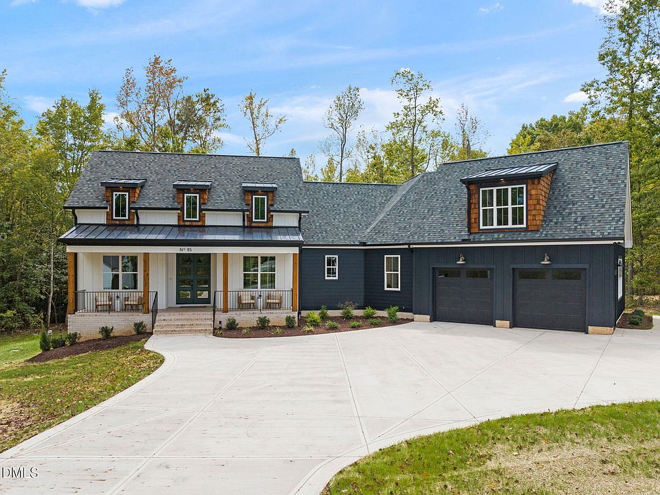 2025 Parade of Homes Gold Winner! Crisp lines meet cozy charm in this modern farmhouse dream by H&W Custom Builders. A covered front porch with natural wood columns and a sleek metal roof offers the perfect spot to start or end your day. Inside, a vaulted family room with wood beam accents and a striking fireplace anchors the open-concept living space. The designer kitchen features a center island and a walk-through scullery for added prep and storage, while the formal dining room is ideal for entertaining. The private owner's suite includes a tray ceiling, spa-inspired bath, and a spacious walk-in closet with direct access to the laundry room. Two additional main-level bedrooms share a well-designed buddy bath. Upstairs, another large bedroom with full bath provides flexible space for guests, work, or play. Enjoy wooded privacy from the screened back porch, plus a 2-car garage with built-in storage. This home offers timeless style and everyday functionality in perfect balance.
