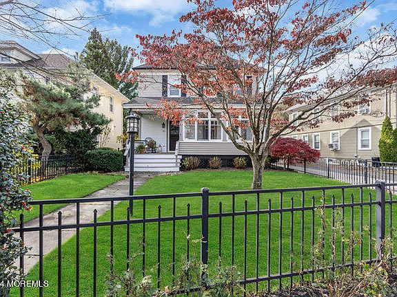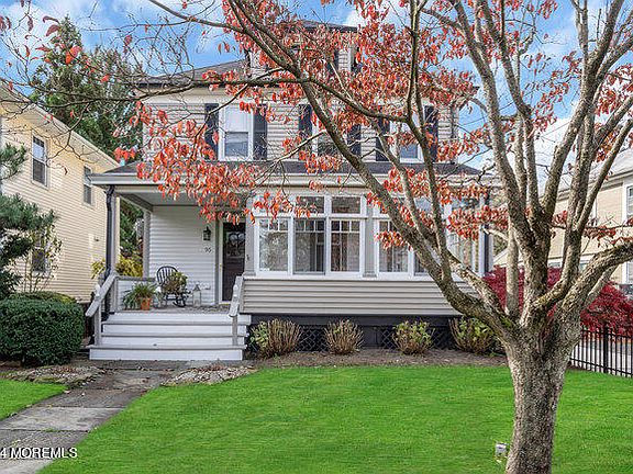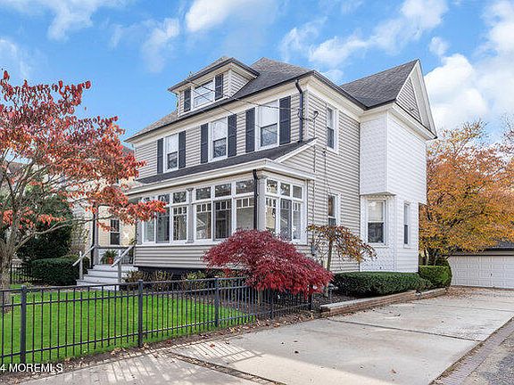 This truly spectacular Colonial in the heart of Red Bank blends perfectly the historic charm and new updates & aesthetic touches that every buyer is searching for. As you enter the front gate you're greeted by a covered rocking chair front porch and spacious sunroom to enjoy your morning coffee. You'll be in awe of the attention to detail in this home- preserving all the character of yesteryear including wainscoting, beadboard accents, stately crown moldings, original doors and knobs and hard wood floors. Warm historical charm balances perfectly w/ all the modern updates like the gourmet kitchen, primary bath w/radiant heat flooring, finished basement, central air, brand new sewer line & windows. Great entertaining home w/ expanded new kitchen complete with stainless steel appliances, white subway tile, silestone countertops, double sink and a contrasting custom island, eat in area and skylight as well as adjoining family and living room with high ceilings, wood burning stove, original pocket doors, and lots of natural light! The basement has been tastefully redone keeping the exposed brick walls and painted wood ceiling, luxury vinyl wood plank floors, bar area, work out area & laundry- have an entire other living space to enjoy movies & time with family or friends. Great sized bedrooms upstairs with full bath and true primary suite and then a third level walk up attic which has a bonus room for use as office or for guests and tons of storage. Lovely LARGE fenced in back yard, paver patio, slate walkway and covered entry as well as an oversized detached garage and long driveway complete this home. Easy to maintain vinyl siding and brand new sewer line just adds to the quality as well as ideal location within minutes to downtown Red Bank, NJ Transit, schools & parks. A special home with so much to offer only comes up once in a lifetime and this is it!
