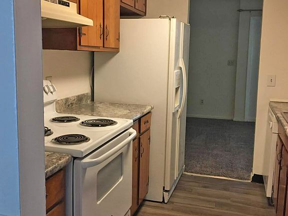 Hook ups for washer and dryer. Furnace, central air conditioning system, and hot water are natural gas. Floors are carpet, or ceramic or vinyl tile. Trash pick up included. Pets allowed with prior agreement and additional fees. Monthly rent includes water. All other utilities are paid by resident.