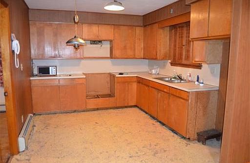 A great, open floor plan, one level living and plenty of sunshine are features found in this charming 1 bedroom bungalow. Features include a fireplaced living room with wood floors and picture windows, an open eat-in kitchen & dining area and one very spacious bedroom with 2 full closets. The bathroom is tiled with a shower/tub combination and washer/dryer hookup. Other features include forced hot water heating system fueled by gas, a separate hot water tank, aluminum siding, walk-out basement, extra long driveway with room to park 3 or more cars (tandem) and a spacious tiered lot. This home needs some TLC but has great potential as a condo-alternative with the convenience of one-level living.