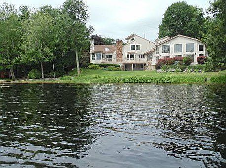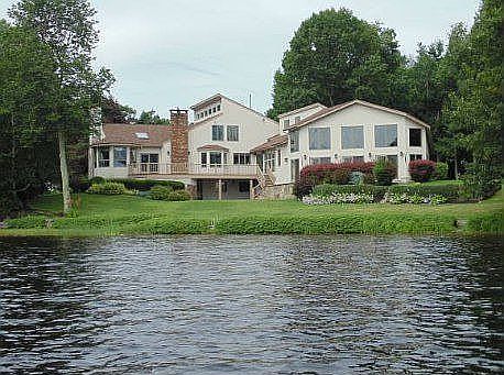 WATERFRONT CUSTOM CONTEMPORARY offers amenities and a life-style of a luxury villa including a private boat launch, dock, sandy beach, heated indoor pool and hot tub! Terraced lawn provides two patios and professional landscaping. The architect's use of space, natural resources and texture--cathedral ceilings,exposed polished beams, wall of windows, skylights, granite, flagstone, ceramic, and a variety of hardwoods makes this a home of distinction. Atrium doors lead to expansive decking, a sunroom links the main house to the separate pool suite which also has its own entrance The whole house Bose sound system completes the ambiance. Master BR offers ensuite bath, California closet and gas FP. Finished lower level boasts recreational/family room with guest suite/private bath. Beautiful lake views, spectacular sunrises, island inspired living and all within an hour's drive to the ocean, the mountains and Boston!