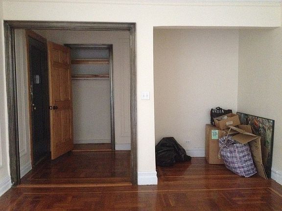 This spacious alcove studio features a beautiful juxtaposition of pre-war detail and modern finishes. Parquet wood floor, with both raw metal door frames and picture moldings throughout, the main room features an alcove that allows for a real division of space. Separate eat-in kitchen, generous closet space. Building amenities include laundry in basement, elevator and live-in super. Approx. 400 sq. feet. Pets welcome