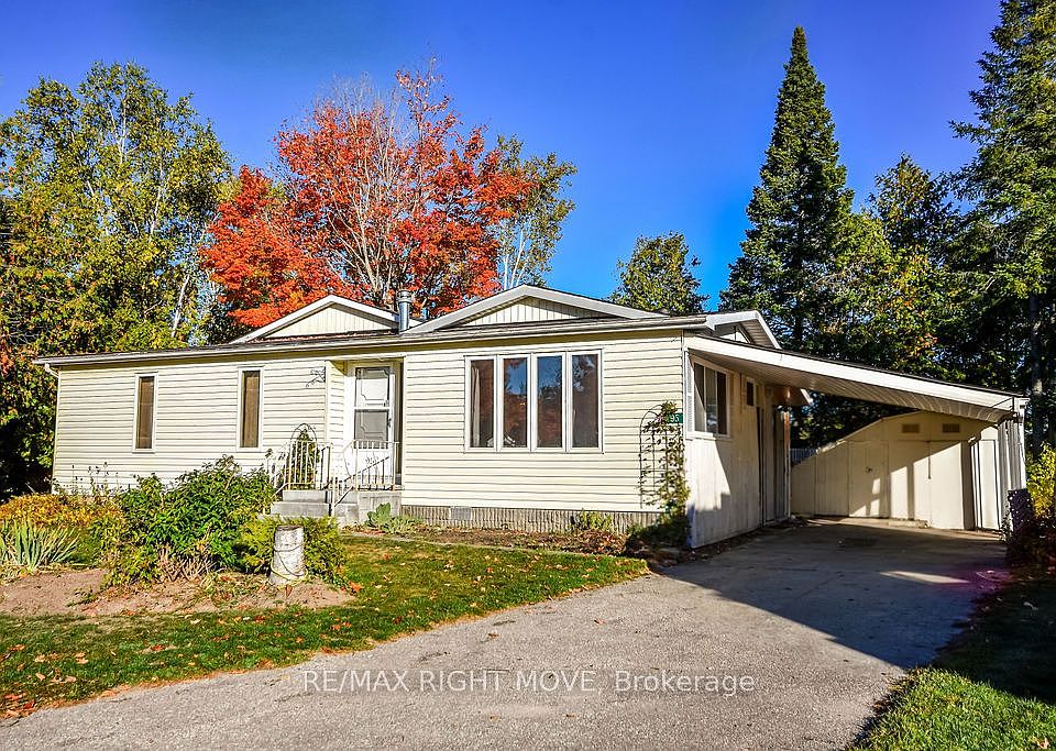 Welcome to Big Cedar Estates, an established adult lifestyle, resident owned community in Oro-Medonte Township, just minutes from Orillia. Located in a picturesque, rural setting, adjacent to the shore of beautiful Bass Lake, this unique community offers a relaxed and maintenance-free lifestyle for adults aged 50 and over. Set on a quiet cul-de-sac, this well-located 2-bedroom modular home overlooks a mature, well-treed lot, offering peace and privacy year-round. Inside, you'll find generously sized principal rooms, a functional galley kitchen, and 1.5 bathrooms - a comfortable layout with space to relax and entertain. With a few thoughtful updates, this spacious bungalow can easily be transformed into the ideal retirement retreat. As part of Big Cedar Estates, residents enjoy low monthly fees of just $345, which include: Water and sewage systems Garbage pickup & recycling, grass cutting and leaf removal in the Fall, snow removal from roads and driveways in Winter, Rogers Ignite 500 Bulk TV & Internet Package, RV storage (first come, first served), use of the Community Clubhouse, access to a private sandy beach on Bass Lake, with kayak and canoe racks. Enjoy daily strolls along wooded trails, time by the lake, or connecting with neighbours at community events. This is retirement living at its best - quiet, convenient, and full of opportunity.