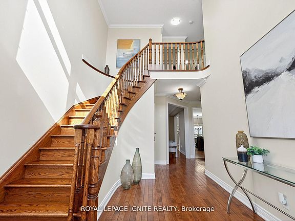 Executive 4+2 bedroom, 4-bath detached home offering over 3,500 sq ft of living space in one of Bradford's most desirable communities. Double-door entry opens to a soaring 22 ft foyer with elegant finishes throughout. Main level features hardwood flooring, crown moulding, California shutters, 9 ft ceilings, and a central vacuum. Gourmet eat-in kitchen with granite counters, stainless steel appliances, extended cabinetry, and walkout to landscaped yard. Spacious family room with a gas fireplace plus open-concept living/dining ideal for gatherings. Upstairs boasts 4 generous bedrooms, including a luxurious primary retreat with spa-inspired ensuite and walk-in closet. Professionally finished basement with separate entrance, full kitchen, bedroom, bath, laundry, and recreation room perfect for in-laws or rental income. Exterior offers fenced yard, garden, small trees, custom shed, parking for 6 (no sidewalk), and newer shingles (less than 5 years). Close to schools, parks, GO transit, and Hwy 400. Truly move-in ready!