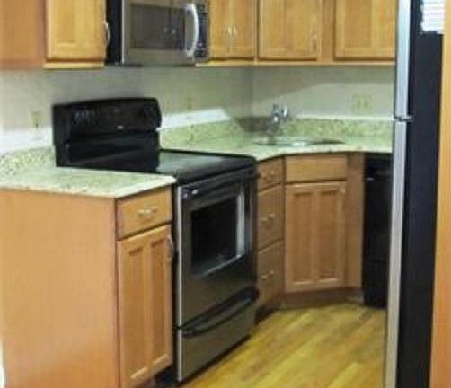 Modern 1 bedroom unit near Oak Grove Station. Open concept kitchen/dining room/living room with a sliding door to a private balcony. Good size bedroom, hardwood floors, generous closet space. Kitchen offers new cabinets, granite counter tops and SS appliannces. Fully renovated bathroom. Heat and hot water included in the condo fee. Condo fee only $165! You will live in your own unit for less than you would rent it!