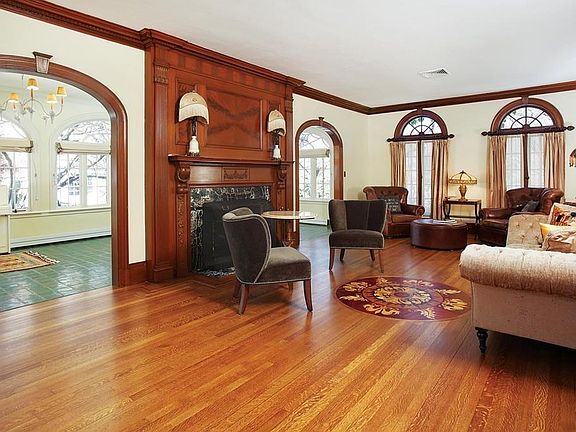 Echoing the grandeur of the 1920s, this beautifully-appointed Neoclassical-style residence was designed by an architect in 1928 for a Boston shoe baron. The 4,200 +/- square foot interior, graced with exquisite architectural detail, handsome wood tones, intricate inlaid flooring, and wonderful light, is well-suited for grand entertaining with its elegant foyer and expansive living and dining rooms. There are ten rooms, four bedrooms - including a luxurious master bedroom with a fireplace, and four full bathrooms. Other features of this well-maintained property with a lovely street presence include a deck, central air-conditioning, excellent accommodations for an au pair, a direct-entry two-car garage, and a lovely landscaped yard. This property is convenient to the Green Line MBTA station as well as local shops and restaurants.