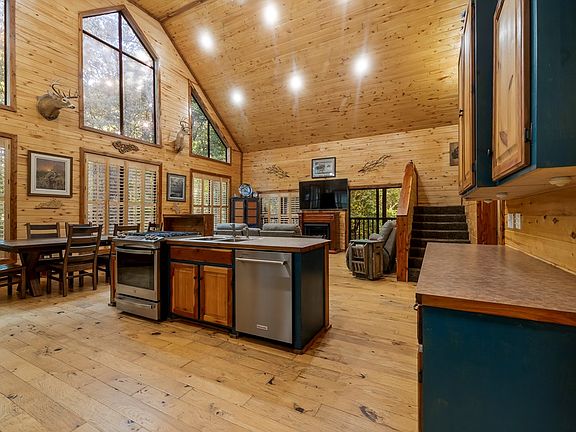 Propane gas log fireplaceFloor-to-ceiling windowsTall ceilingsPrivate acresOpen-concept kitchenPainted cabinetsNewly stained back deck