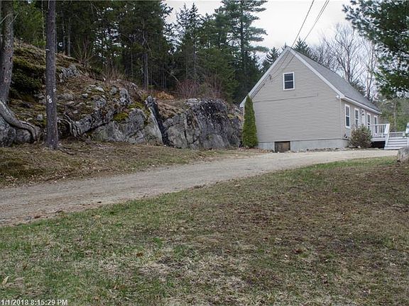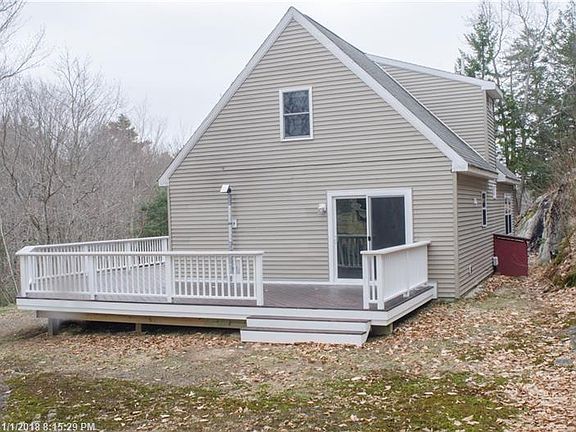 MOVE IN READY! This elevated quintessential New England cape sits tucked in front of a large ledge outcropping providing privacy and added protection from the elements. Gorgeous kitchen with slate island and sliding glass doors lead to the northeast facing wraparound deck for quiet mornings, romantic evenings or laughter-filled gatherings. Open concept with first floor bedroom and option for first floor living. Washer & dryer on the first floor. Keep warm in the living room by the pellet stove. Large upstairs bedrooms with plenty of built in storage. Beautiful custom tile bathrooms on each floor. Vinyl siding offers longevity and low maintenance. Adjacent to Phippsburg Land Trust.