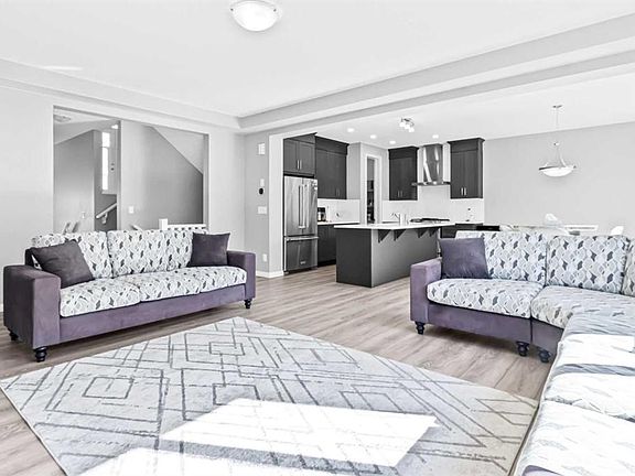 Offering 2,380+ SQFT of modern living space, this beautifully designed 2-storey home, built in 2020, is perfect for a growing family. Step inside to a grand 12-foot foyer that sets the tone for the open-concept main floor. With 9-foot ceilings and luxury vinyl flooring, the layout seamlessly blends style and functionality. The living room features a sleek gas fireplace, creating a warm and inviting atmosphere for relaxing or entertaining. The chef-inspired kitchen is equipped with quartz countertops, a central island, a walk-in pantry, and stainless steel appliances including a gas stove. Just off the kitchen, the dining nook offers the ideal setting for family meals and gatherings. A stylish half bath and a convenient laundry room complete this level. Upstairs, you’ll find a bonus room with soaring 14-foot vaulted ceilings and oversized windows that fill the space with natural light. Step out onto the private front balcony to enjoy sunrises and peaceful mornings. The primary suite is a true retreat, featuring a spacious walk-in closet and a spa-like 5-piece ensuite with a soaker tub, oversized glass shower, and dual vanity. Two additional bedrooms and a full 4-piece bath provide comfort and flexibility for family or guests. The full unfinished basement is ready for your personal touch, complete with rough-in plumbing for a future bathroom—ideal for a home gym, media lounge, or extra living space. Additional highlights include a double attached garage, a Virtuo Fresh Air System for optimal indoor air quality, and a fenced backyard—perfect for gardening, pets, or summer BBQs. Located close to parks, pathways, Carrington Plaza, and with easy access to Stoney Trail and the future Green Line LRT, this home truly has it all.