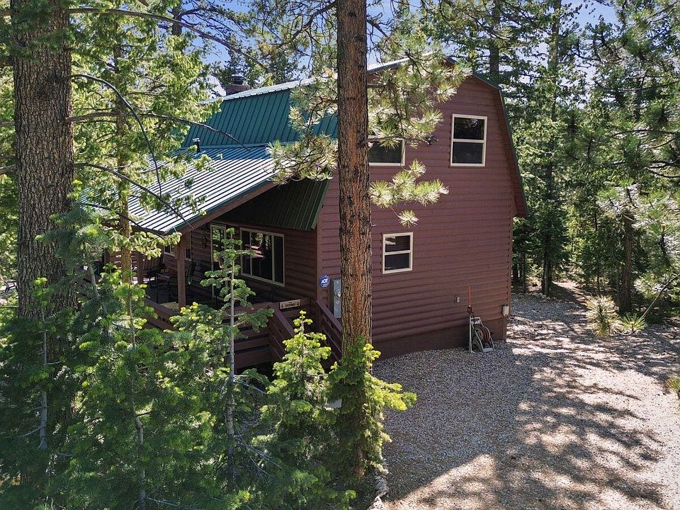 Welcome to your dream mountain escape! Nestled on three scenic lots and backing directly to the Dixie National Forest, this stunning 2-bedroom, 1.5-bath retreat with approx 1,300 square feet offers peace, privacy, and the perfect blend of rustic charm and modern comfort. Step inside to discover a cozy open-concept living area warmed by a classic wood-burning stove where expansive windows invite in natural light and offer breathtaking woodland views. Boasting a fully equipped kitchen/dining and living areas, this home comes complete with all furnishings, making this retreat turn-key and ready to enjoy. Both bedrooms are generously sized, and a bonus room in the basement adds flexible space for guests, hobbies, and plenty of extra storage. (See more for additional detail) Welcome to your dream mountain escape! Nestled on three scenic lots and backing directly to the Dixie National Forest, this stunning 2-bedroom, 1.5-bath retreat with approx 1,300 square feet offers peace, privacy, and the perfect blend of rustic charm and modern comfort. Step inside to discover a cozy open-concept living area warmed by a classic wood-burning stove where expansive windows invite in natural light and offer breathtaking woodland views. Boasting a fully equipped kitchen/dining and living areas, this home comes complete with all furnishings, making this retreat turn-key and ready to enjoy. Both bedrooms are generously sized, and a bonus room in the basement adds flexible space for guests, hobbies, and plenty of extra storage. Outside, you'll find large covered and uncovered decks boasting a hot tub ideal for entertaining or simply relaxing as you watch the local wildlife meander through the property. The property has fencing with a gated entrance for added privacy and security. A detached garage provides room for your mountain toys! Village amenities are a short drive or ride away. Navajo Lake is nearby for boating or kayaking. Bryce & Zion NP are within an hours drive.