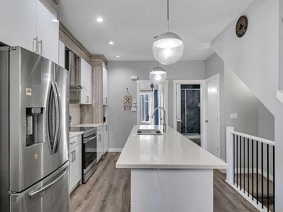 Welcome to this beautifully designed modern Townhouse with 3-BEDROOM, 3 FULL BATHROOM home with a DOUBLE TANDEM GARAGE in the highly desirable community of Skyview Ranch NE, Calgary. Perfectly combining style and functionality, this property offers an abundance of space and thoughtful upgrades throughout. The main level features a spacious double tandem garage with additional storage, ideal for vehicles, tools, or seasonal items. On the second level, you’ll be impressed by the chef-inspired kitchen, complete with glossy DUAL TONE CABINETRY, a large ISLAND WITH QUARTZ COUNTERTOPS, sleek STAINLESS STEEL APPLIANCES with a modern range hood, and plenty of counter and storage space. The open-concept living and dining area is filled with natural light from oversized windows and highlighted by a strategically placed FIREPLACE that adds warmth and character. Elegant LVP flooring enhances the modern feel, while this level also includes a bedroom and a full bathroom with a glass-enclosed standing shower, making it perfect for guests, in-laws, or a home office. Upstairs, the third level is dedicated to privacy and comfort, featuring TWO SPACIOUS PRIMARY BEDROOMS, each with its OWN PRIVATE ENSUITE bathroom. A conveniently located laundry room on this level adds to the practicality of the home. Location is everything, and this home truly delivers. You’ll be within walking distance to Prairie Sky School, Apostles of Jesus School, and Kidz Space Daycare, making it a fantastic choice for families. Just 1 minute away, you’ll find a vibrant shopping plaza with grocery stores, banks, cafés, and a variety of restaurants to suit every taste. Spiritual and cultural needs are also met with the Gurdwara Sahib only 5 minutes away, while frequent travelers will appreciate being just 10 minutes from Calgary International Airport. For professionals and commuters, Downtown Calgary is only 20 minutes away, with seamless access to both Deerfoot Trail and Stoney Trail, ensuring easy connectivity to the entire city. With its modern finishes, versatile layout, prime location, and unmatched convenience, this property truly checks all the boxes. Whether you’re a first-time buyer, a growing family, or an investor, this is an incredible opportunity to own a one-of-a-kind home in Skyview Ranch. Don’t miss out on making it yours!