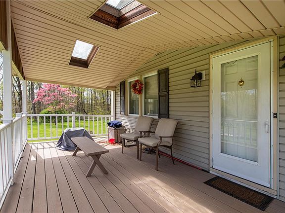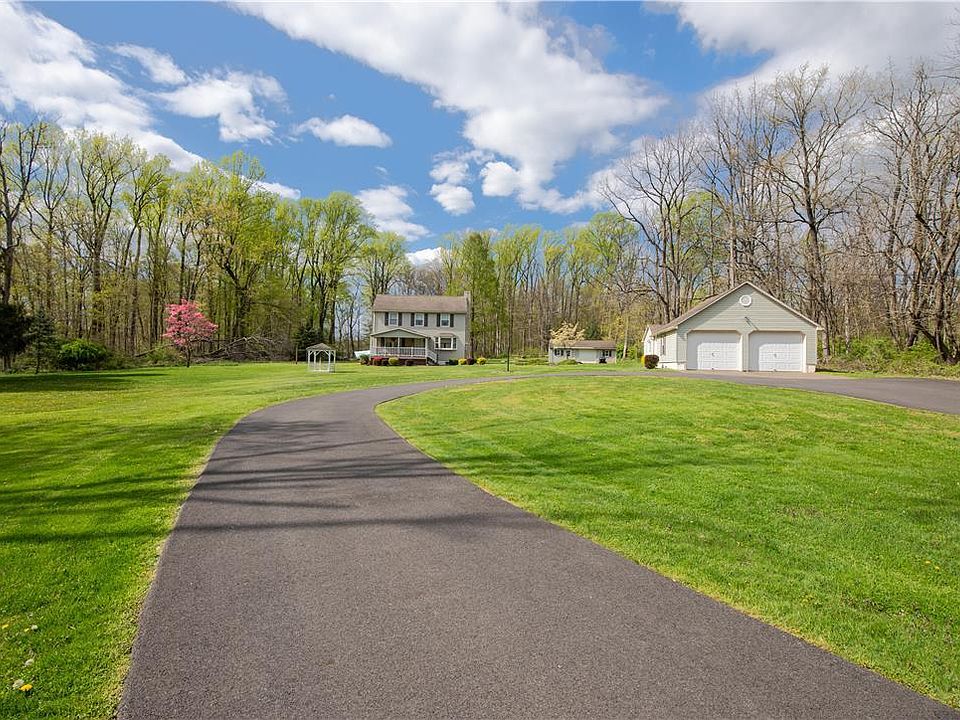 Nestled on over 3 acres of picturesque landscape, this charming colonial-style home offers a serene retreat reminiscent of a park-like setting. The property boasts a tranquil ambiance, with lush greenery and mature trees enveloping the grounds, creating a sense of privacy and tranquility. Step inside to discover a welcoming interior featuring three spacious bedrooms and one and a half baths, providing ample space for comfortable living. The colonial architecture lends timeless elegance to the home, characterized by its classic lines and inviting facade. The main living areas exude warmth and character, with hardwood floors and large windows that invite abundant natural light, creating a bright and airy atmosphere. The living room provides a cozy gathering space, while the adjacent dining area offers an ideal setting for intimate meals or entertaining guests. The kitchen is a cook’s delight, equipped with modern appliances, ample cabinet space, and a convenient breakfast area. From here, step out onto the deck surrounded by the beauty of the landscaped grounds. Outside, the property features a variety of outbuildings, providing endless possibilities for storage, and workshops. Whether you dream of cultivating a garden oasis, creating a hobby farm, or simply enjoying outdoor recreation, this expansive property offers the perfect canvas for realizing your vision.