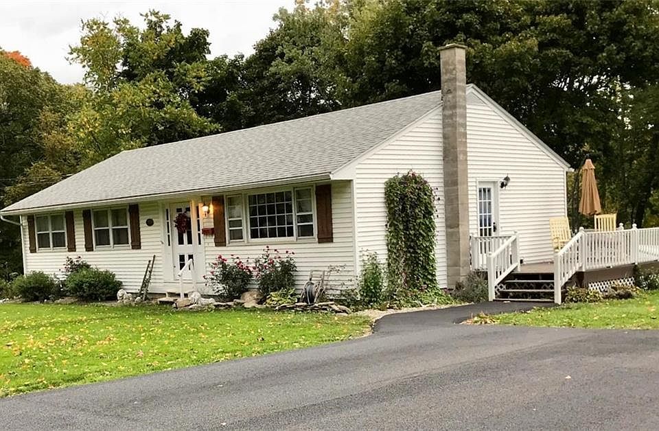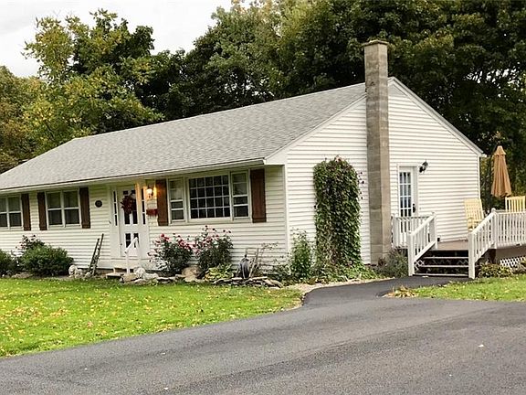 very nice ranch with updated master bath and full 2nd bath lots of hardwood flooring thru out lots of kitchen cupboards and all appliances stay large master bedroom with walk in shower large closet hardwood floor 2 good sized bedrooms and open flo from kitchen to living room large deck attache d and driveway has been redone and new blacktop s and large yard with nice view call quick this is a so nice ranch with full basement and walk out