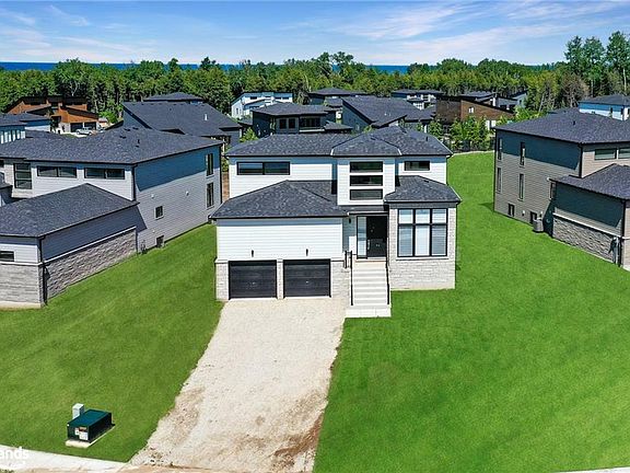 CLOSE TO GEORGIAN PEAKS SKI CLUB. This immaculate property is ideally located in the prestigious community of Bayside, set on an oversized lot. Just built! This 3 bedroom + loft, estate home is minutes away from Georgian Peaks Ski Club and Council Beach. Ideal for outdoor enthusiasts and nature lovers. With tall windows, vaulted ceilings and plenty of open living space - you'll feel right at home. Sit back, relax and enjoy Après-ski beverages in the living room as the gas fireplace keeps you warm. The kitchen area is absolutely stunning with quartz counter tops, upgraded cabinetry and modern & Jennair appliances (paneled in). The laundry is conveniently located on main floor, along with the primary bedroom and another guest bedroom. The primary has a luxurious soaker tub - great for resting those muscles after a long day at the slopes. The upper floor has a spacious loft area in addition to one more bedroom. All bathrooms have upgraded stone counter tops and high end fixtures. The basement upgrades include: larger windows and increased ceiling height. Plenty of basement storage space (unfinished). Zebra blinds installed. Find a sanctuary of your very own at 95 Goldie Crt!