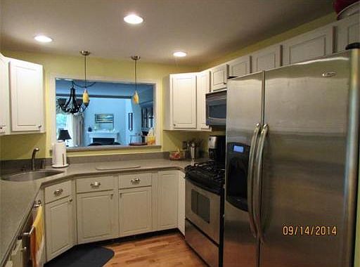 FANTASTIC LOCATION IN SPRUCE POND! THIS END UNIT TOWNHOUSE FEATURES INCLUDE 2 CAR GARAGE, AN UPDATED KITCHEN W/ CORIAN COUNTERS & STAINLESS STEEL APPLIANCES. BEAUTIFUL HARDWOOD FLOOR IN KITCHEN- EATING AREA AND JUST FINISHED NEW 1/2 BATH/ OPEN CATHEDRAL FAMILY ROOM W/SKYLIGHTS, GAS FIREPLACE-TRIPLE SLIDER WALKS OUT TO COMPOSITE DECK OVERLOOKING PRIVATE BACK YARD/OPEN DINING AREA AND EXTRA ROOM WHICH IS USED AS A DEN BUT COULD ALSO BE AN OFFICE AND/OR EXTRA BEDROOM, UPSTAIRS FEATURES INCLUDE MASTER BEDROOM W/ MASTER BATH & WALK-IN CLOSET, 2ND FLOOR LAUNDRY, LOFT AREA AND 2ND BED W/ OVERSIZED WALK-IN/ BASEMENT IS FINISHED W/ TWO ROOMS AND BRAND NEW CARPET. CENTRAL AIR/ GREAT LOCATION FOR SURE! WALK TO TOWN AND EASY 495 ACCESS. SHOWINGS START NOW BUT THERE WILL BE AN OPEN HOUSE 9/28 12:00-1:30.