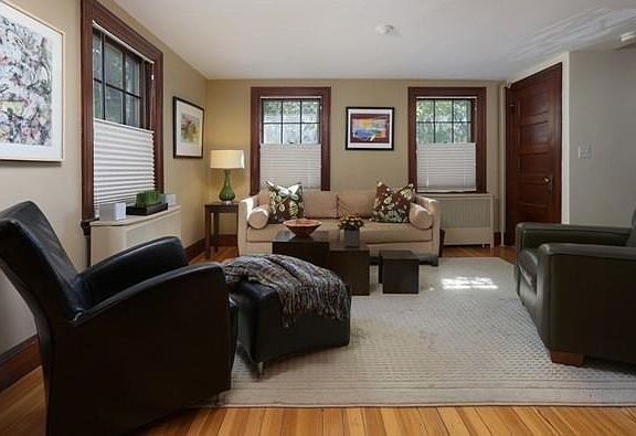 Storybook Pill Hill historic district c1920 attached brick 1000+/- sq ft two bedroom, one bathroom single-family house with private deck, perennial and berry gardens, garage and two outdoor parking spaces, abutting a private circle containing joint-ownership association open land. Designed by noted architect Walter Kilham as a model artistic working class housing design, and offering an open floor plan with much charm and architectural interest. Basement offers a family room and areas currently used for office & exercise. Full attic storage and expansion potential. Stellar location near Brookline Village's restaurants, shops, MBTA "D" line & buses and main library, and close to the Longwood medical area and the Lincoln and Brookline High Schools. The lush greenery of Olmsted Park, Downes Field running track and dog park, playgrounds and Jamaica Pond all at your doorstep.