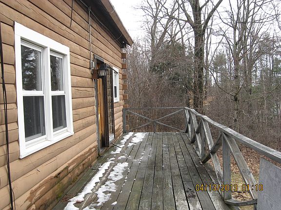 CONTEMPORARY LOG HOME NESTLED ON OVER 4.5 PRIVATE ACRES! Fantastic, turn-key 3 bedroom, 1.5 bath home with two bedrooms on the main level. Open concept living space with soaring cathedral ceiling and beautiful exposed beams. Stunning custom kitchen has a center island with granite counters, new 12x12 tile flooring & is fully equipped with new stainless steel appliances. Master bedroom has an amazing wall of custom built-in drawers and half bath. New carpet in all bedrooms. Exterior has been painted and a brand new oversized wrap-around PT deck with composite decking that overlooks the front yard has been recently added. Large enclosed three-season porch. Detached two-car garage with two new garage doors & a work/storage space. Passing Title V in hand. Quick close possible. This is the one you have been waiting for. 4 private acres, 3 minutes to town center, 2 miles to Route 2 & 1 showing away from being yours!