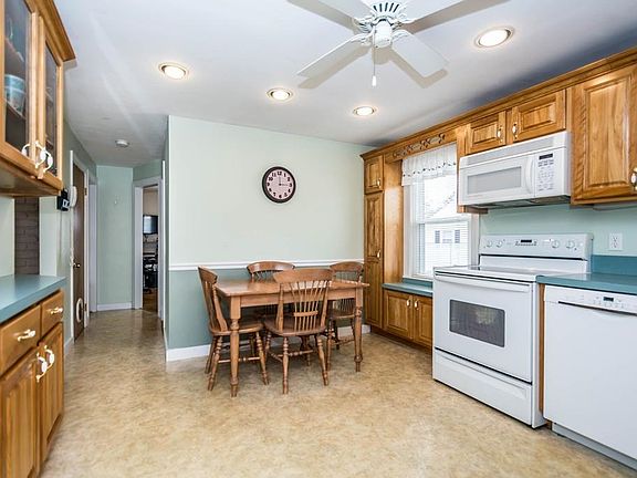 Up-size from your condo or apartment or downsize from your bigger home. This house shrinks and expands as you need it. Updated kitchen, 1.5 baths and first floor washer and dryer capability, hardwood floors,vinyl siding,four bedrooms and in-ground sprinkler system keeps your maintenance low. The partially finished basement for playroom or family area has plenty of storage and potential! Two stand alone storage units in yard.with electricity along with a fully fenced in yard is great for kids or pets! All appliances to stay at conveyance as gifts. The two full bedrooms upstairs are there to expand your space! This home has been lovingly cared for, maintained and enjoyed. The three season breezeway with vaulted ceilings can easily be heated to use year round. This home is ready for a new owner to move in. Close to the Dr.Daoulas school complex, restaurants, shops and is centrally located. No FHA financing.