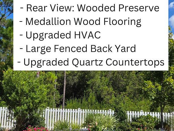 The large screened rear porch includes an oversized, comfortable swing bed to enjoy the beautiful fenced backyard, extensively landscaped for privacy and backing to a peaceful wooded preserve. The home features offered by this Huff Homes' modified Begonia plan include attractive curb appeal with its high-elevation roofline, a 2' wider garage, and owner installed whole-home steel gutter system. Three premium Smart LED TVs and a high-quality Murphy bed are included with this luxurious, comfortable home in close proximity to gorgeous beaches and wonderful area amenities. Enjoy all the offerings of this master planned community including a resort-style pool, top of the line fitness center, tennis, pickleball, volleyball, basketball, playground and UNLIMITED GOLF on an award winning course! The new Town Center, conveniently located at the front of the neighborhood, is designed to serve the community offering a Publix, Starbucks, restaurants, shops, medical facilities and event spaces! Don't miss out on the chance to make this incredible home your own!