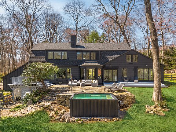 Discover serene living at 95 Louise's Lane, a modern oasis available for rent at the end of a quiet cul-de-sac. This stunning home offers breathtaking pond and river views, blending tranquility with proximity to vibrant downtown New Canaan and nearby Pound Ridge. Featuring 5 spacious bedrooms with nature-inspired views, this home is perfect for those seeking comfort and elegance. The open first-floor layout, with sleek white floors and walls framed by expansive windows, creates a bright and inviting space ideal for entertaining. Upstairs, a versatile great room with a loft is perfect for cozy movie nights or memorable gatherings. Outside, enjoy a private bluestone terrace and a refreshing dip in the cutting-edge modpool. Experience sophisticated rental living in a peaceful setting.
