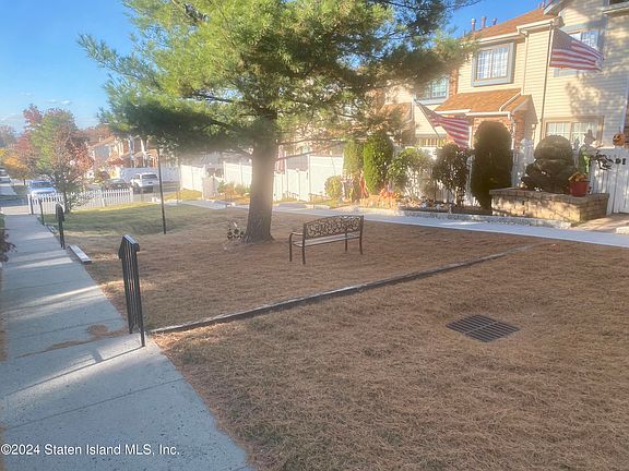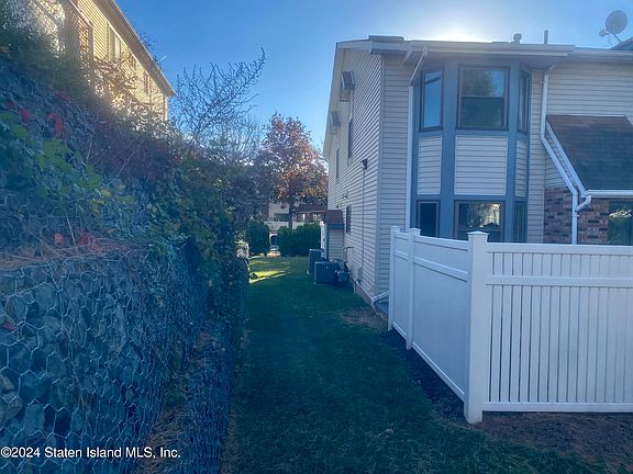 Real estate brokers own Fully renovated 3-bedroom, 1.5 bath end unit townhouse facing rear courtyard in the super desired Four Brothers Development. Features include: New eat in kitchen with all new LG Stainless steel appliance, crown molding, recessed lighting, new shaker cabinets with quarts counter tops, custom tile backsplash, new tiled floor, large living room and formal dining, room with all new flooring through out, crown molding, custom shadow box molding, chair rails, recessed lighting in living room, new chandelier in dining room, custom built staircase with closet ( Most units only have open back ladder like staircase ) 2-renovated bathrooms, all new doors and casement moldings through out, large main bedroom with walk in closet, large main bathroom with walk in shower, large attic storage, plenty of closet space, new paint, custom pavers, off street parking, pool, tennis Ct. Five minutes from all shopping, including the Staten Island Mall, 15 minutes to the VZ Narrows Bridge, 3 minutes to golf course. Truly a must see. This unit is not for investors, No rentals permitted.