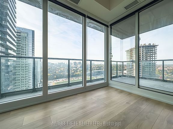 Stunning two-bedroom, two-bathroom corner unit with expansive panoramic park views. This bright and spacious layout features floor-to-ceiling windows and a large wrap-around balcony. The modern kitchen is equipped with top of the line appliances , ample cabinetry, and a quartz countertop. Hardwood flooring extends throughout the unit, which is in excellent condition. The primary bedroom includes a four-piece ensuite and a generous closet. High-end finishes throughout. Located in a luxurious, brand-new building by Concord, this northwest corner unit offers unbeatable access to amenities: a short walk to the subway, GO Train, future community center, parks, Bayview Village, Fairview Mall, IKEA, North York General Hospital, and highways 401 & 404.
