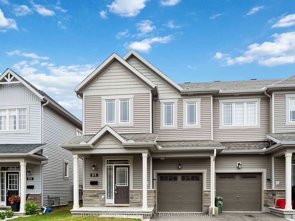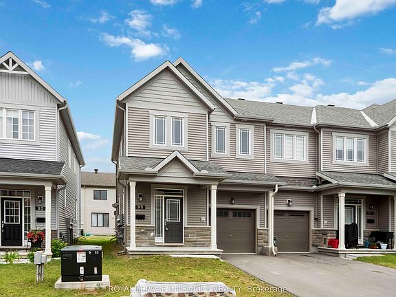 Location, Location, Location! Welcome to this beautifully upgraded Glenview Elm model 3-bedroom end-unit townhome offering approximately 2,000 sq. ft. (as per builder) in the highly desirable Flagstaff community of Barrhaven. Nestled on a single driveway, this home features a charming front porch and a spacious foyer that creates a warm and welcoming entrance. Step inside to find elegant finishes and thoughtful upgrades throughout, including 9' ceilings, hardwood flooring, and quartz countertops. The open-concept main floor is filled with natural light thanks to an abundance of windows, and features a spacious upgraded kitchen with stainless steel appliances, quartz countertops, and a cozy breakfast area, along with a generous great room with cozy fireplace perfect for entertaining or family time. Upstairs, you'll find three spacious bedrooms and a modern full bathroom. The primary suite offers a walk-in closet and a luxurious 5 piece en-suite complete with double vanity, soaker tub, and separate glass shower. The finished basement adds valuable living space with a family room, laundry area, bathroom rough-in, and plenty of storage. Located just minutes from parks, top-rated schools, Costco, Home Depot, and all the conveniences of Barrhaven. This is the perfect place to call home. Don't miss your chance to live in this stylish and move-in-ready townhome in one of Barrhaven's most sought-after neighborhoods! Go & show. All measurements are approx.