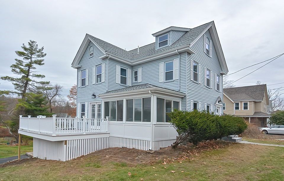 Renovated spacious corner lot Colonial home with beautiful views of Old Shephard Pond dam thruout 4 levels. This home has been renovated to include a spacious private master bedroom suite with a full bathroom in the top floor, 3 good sized bedrooms in the 2nd floor, and a bonus familyroom in the lower level. Nice and bright custom kitchen with Shaker style cabinetry, breakfast bar, granite countertop, and stainless steel appliances. All bathrooms have been tiled with a contemporary flair. Dining room with French doors leading to a large composite wood deck that is perfect for entertaining, and offers unobstructed water views. There have been significant improvements to this home, and it includes many major new items such as roof, vinyl replacement windows, 2 Goodman HVAC systems, Navien tankless hot water, 200amps electrical service, Red Oak hardwood flooring thruout, plastered walls, insulation, plumbing, doors, trim, paved driveway, etc. All this home needs is your personalization!