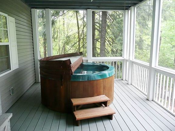 LOTS OF SQ FOOTAGE AND WORKSHOP SPACE - This home has a great split floor plan with two master suites on the main level - one with a fireplace. The bedrooms open onto the 12'X60' screened porch & you can leave the doors open and listen to the nearby river. The kitchen boasts stainless appliances, solid surface counters, a pantry & lots of cabinets & counter space. The home also features a loft where you can curl up with a book, a full finished basement with media room & home office, large lower deck with hot tub, a drive-under 2 car garage, an additional detached 24x36 garage/workshop, 20x40 covered parking for RV, and paved drive.