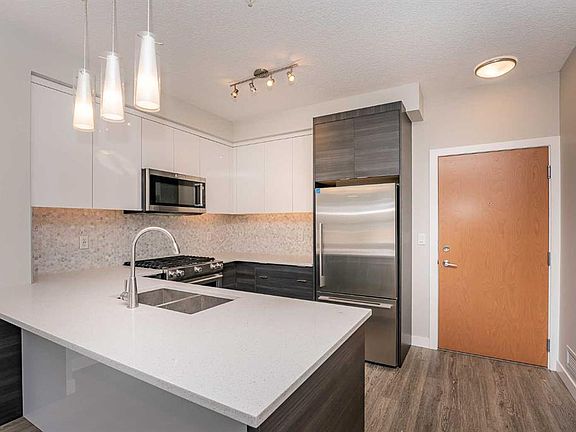 BUILDER SALE! Looking for upgrades in a spec unit? This might be the one. Welcome to the Axess building, located in the heart of the historic Currie Barracks community! This beautifully upgraded 1-bedroom unit features soaring 9-foot ceilings. Step inside to find luxury vinyl plank flooring and an abundance of natural light streaming through oversized windows. The stylish kitchen showcases a modern blend of crisp white and dark cabinetry, upgraded stainless steel appliances including a gas stove, quartz countertops, and a designer tile backsplash. An open counter connects seamlessly to the dining area, perfect for entertaining. The spacious living room leads to a top-floor balcony with a gas BBQ line and unobstructed southern views—the perfect place to relax and enjoy breathtaking sunsets. The generously sized primary bedroom features a walk-through closet with direct access to the elegant 4-piece bathroom, complete with tile flooring, quartz countertops, and a soaker tub. Just off the kitchen is a versatile nook—ideal for extra storage or a small home office setup. Additional highlights include in-suite laundry, underground parking with a car wash, and a private storage locker located directly in front of your parking stall. All this in a prime location—steps from Mount Royal University, walking paths, parks, shopping, and with easy access via Crowchild Trail to Marda Loop and downtown Calgary. A truly exceptional opportunity to own in one of Calgary’s most desirable communities.