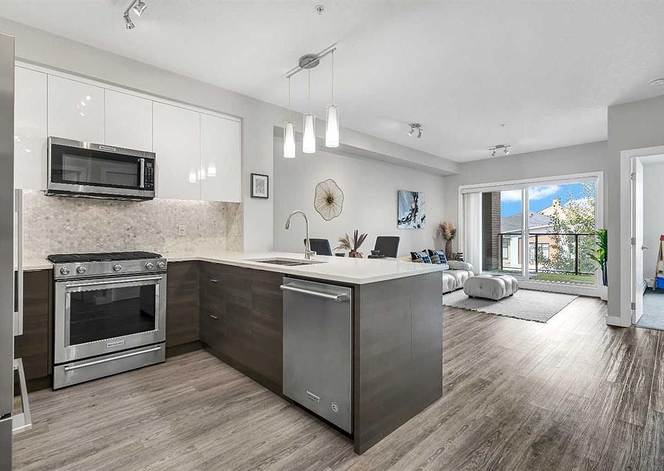 Welcome home to 95 Burma Star Road SW #3304—your private sanctuary in the heart of Calgary’s most dynamic community! Discover contemporary elegance in this executive 2 bedroom + 1 bath residence, perfectly situated in Calgary’s coveted Currie Barracks enclave. Showcasing brick and stucco façades with striking modern lines, the building’s architectural curb appeal extends into a beautifully landscaped central courtyard and private patio decks. *Seamless Entertaining*: Expansive living area anchored by top-rated sound-proof flooring, bathed in natural light, and flowing onto your balcony—ideal for morning coffee or evening cocktails. *Gourmet European Kitchen*: Quartz countertops, dazzling backsplash, LED under-cabinet illumination, and premium stainless-steel appliances, including a gas-range cooktop. *Spa-Inspired Bath & Retreat*: Spa-like bathroom with a luxurious walk-through closet connecting the grand master suite to the ensuite. *Premium Touches*: In-suite laundry, high ceilings, and a titled heated underground parking stall with private cage-storage locker just in front of your parking. *Wellness & Recreation*: Secure bike room, gleaming car-wash bay, and verdant courtyard sitting decks. *Convenience & Guest Parking*: numerous underground visitor stalls, plus easy elevator access to your foyer. *Historic Meets Modern*: Currie Barracks blends heritage charm with sleek, new-build sophistication—just steps to Mount Royal University’s leafy campus and vibrant Officers’ Garden. Plus close proximity to Top Rated Schools such as Master's Academy & College, Clear Water Academy, etc. *World-Class Shopping & Dining*: Westbrook Mall (5 min drive with LRT access), Marda Loop (7 min drive)—Calgary’s premier outdoor dining and boutique district, Signal Hill Towne Centre (8 min drive)—over 50 retailers, upscale grocers, and eateries in an open-air village setting. *Active Outdoors*: Golf enthusiasts will love nearby Shaganappi Point Golf Course and C-Train access at Shaganappi Point Station, whisking you downtown in minutes. *Effortless Commute*: Only 7 minutes Drive to Downtown Calgary via Bow Trail or Easy Access via LRT line—your gateway to the energy of the city without sacrificing a serene home address. Embrace an elevated urban lifestyle where luxury finishes, thoughtful design, and a world of amenities converge. Call your favorite Realtor today to book a showing!