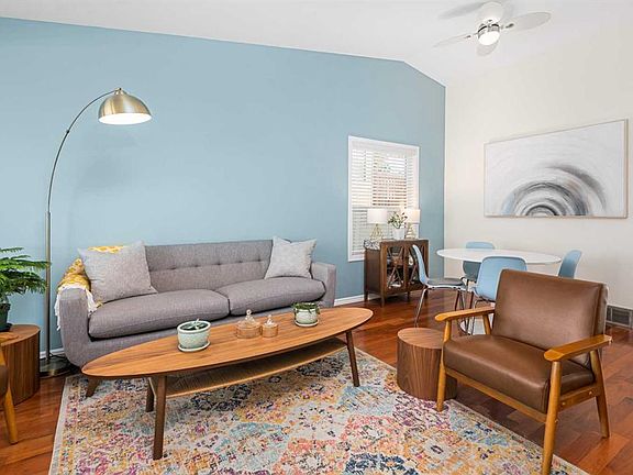 Vaulted ceilingsRich hardwood floorsClean modern kitchenOak cabinetsGranite countersCozy wood-burning fireplaceBrick accents