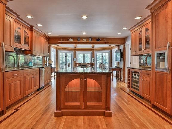 GEOTHERMAL HEATING/COOLING! Stunning private luxury home, equipped with an elevator, built for entertaining, with a flexible floor plan for a variety of living needs, including but not limited to home office, au pair or intergenerational living spaces. The chef’s kitchen offers cherry cabinets, double wall ovens, Miele built-in coffee machine, induction cooktop and vaulted eat-in area with access to a secluded deck! The expansive primary suite with stunning bath - marble, radiant floor, infinity soaking tub, spa shower, and oversized double vanity on the main level along with a living room w/gas fireplace & 5 skylights and separate dining room. A few steps up is the cathedral family room connected to a sizeable music/game room. The 3rd level boasts 3 additional bedrooms, 2 full baths and laundry. Finished LL features home office, exercise room, full steam bath and studio. This wonderful home, with geothermal heat/cool, sits on 4.66 idyllic acres. Close to town center!