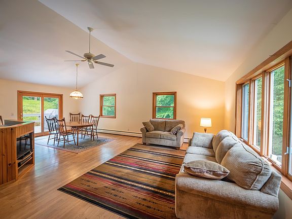 This property on 12 private acres, just 1/2 mile from boat launch on Lake Raponda and abutting the town of Wilmington conserved land and trail system, is a perfect location for year round enjoyment. The custom home was constructed in 1993 and occupied by it's original owner for 30 years. The cathedral ceiling, oversized windows, and open concept design make the living space adaptable to today's lifestyle. A floor to ceiling masonry fireplace, hardwood floors throughout, and oversized windows enhance the space. Sliders open to the private deck and back yard. A two car garage, on the first level, provides easy winter access or potential conversion to additional living space, with an adjacent workshop and bathroom. A generator hookup, water filtering systems, 200 AMP electric, and Scandinavian sauna are a few examples of the owners attention to detail. The meandering driveway, stonewalls, and woodlands enhance the property offering tremendous potential as a private estate site near to Lake Raponda and ski areas, yet only 5 minutes to town.