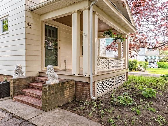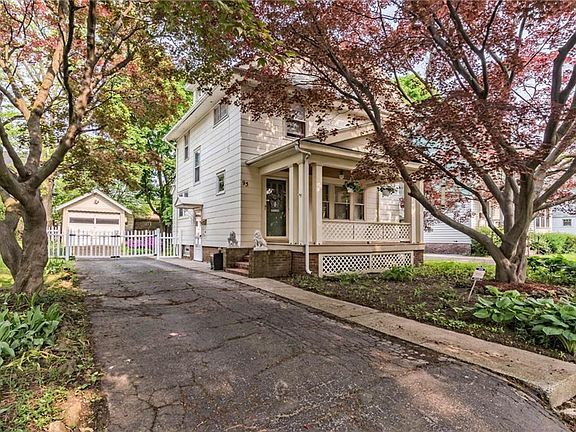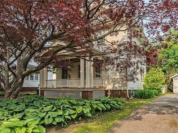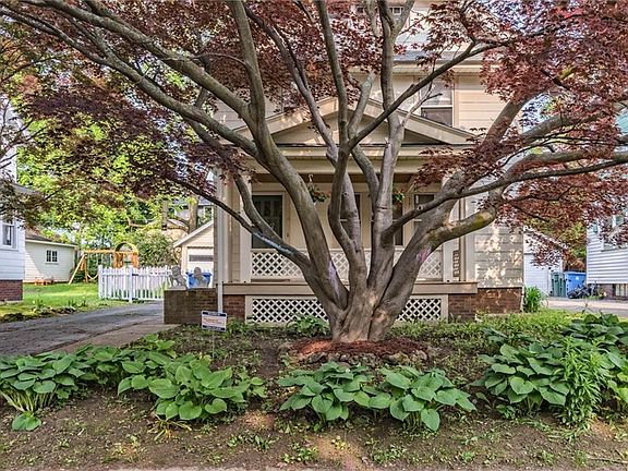 The large front porch is shaded by the magnificent red maple tree in the front yard. Enter thru the tiled foyer with coat closet. French door leads to the living room with decorative brick fireplace flanked by built-in bookshelf. Large windows look out onto the porch and allow the natural light to brighten the space. The gleaming hardwood floors and light gumwood trim brighten every room in the house. Wide doorway leads to spacious dining room. The kitchen has plenty of cabinet space and breakfast bar. You can look out onto the partially fenced rear yard. Upstairs has 3 bedrooms and full bathroom. Built-in linen cabinet and full walk-up attic. Side door leads to small landing with quick access to the full basement or kitchen. Roof 2011, Furnace 2008, glass block windows 2016. Furnace & Water Heater service & inspection May 2019. Detached single car garage has new roof 2019. Delayed negotiations on 6/10 5 pm