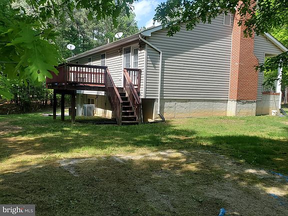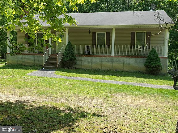Country living at its best! Minutes from town on mostly state-maintained roads. Nice Rancher-2 finished levels on 5.1 acres. Easy access, level yard area, wooded for privacy. Home features 3 bedrooms, 3 full baths. Dining room hardwood. Basement has wood burning fireplace, full bath, walk-out.2 car garage with access to huge storage area length of house. Nice front porch and rear deck to enjoy the wildlife! Home has water chlor. system.  Property sold as is! Great price!
