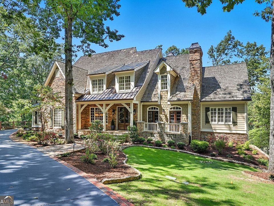 Nestled on a private cul-de-sac, this custom-designed estate with a 4-car garage captures the perfect blend of luxury and timeless style. Overlooking the 13th and 14th fairways, the home offers breathtaking views of mature hardwoods within the prestigious Chestatee community, one of North Georgia's most sought-after neighborhoods, located on Lake Lanier. Step inside through the grand entryway into a sophisticated and stylish retreat featuring a library office with custom millwork, wood-beamed ceilings, and a cozy fireplace. Tall doorways, hardwood floors, and designer lighting create an atmosphere of elegance throughout the main level. The primary suite on the main floor is a serene escape with a spa-inspired bath, complete with a steam shower, heated floors, a beverage bar, and a custom closet. The great room impresses with its vaulted ceiling, two-story stone fireplace, and expansive woodland views. A chef's kitchen anchors the home with Thermador appliances including a professional range, integrated refrigerator/freezer, beverage center, coffee station, oversized island, and fireside keeping room with a soaring wood ceiling. Entertain effortlessly in the dining room with butler's pantry, or on the three screened porches and expansive deck. Upstairs, there are three spacious bedrooms each feature private baths and newer carpeting. The terrace level offers a full second kitchen, media room, game area, gym, bedroom, bathroom, and direct walkout to the gardens-perfect for entertaining or multi-generational living with access to the lower 2-car garage. Residents of Chestatee enjoy wonderful amenities: a Lodge, swimming pool, splash pad, tennis, pickleball and bocce ball courts, walking trails, parks, playgrounds and marina, as well as an abundance of social events throughout the year. The community also features the recently renovated Chestatee Golf Course and the Tee Time Tavern. Conveniently located near GA 400, University of North Georgia, medical facilities, Dahlonega, wineries and breweries. This home blends luxury with a relaxing lifestyle in an unparalleled setting.