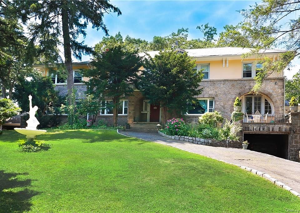 A rare opportunity for the extended family lifestyle where you can create your dream compound with this single family that has an apartment. This stone Mediterranean Villa is perched on almost a level acre private oasis in desirable Lawrence Park West. A grand manor home offering a private guest suite, large rooms, high ceilings, hardwood and marble flooring, architectural, and custom details. The impressive living room with cozy fireplace is a perfect gathering place for all. This home affords upper and lower primary suites, guest suites, and family room meeting areas. Home offices, work spaces, kitchenettes, and closets galore are just some of the many amenities. The grounds are an outdoor paradise with an inground pool, cabana, and koi pond. Conveniently located near transportation, parkways, and the Village of Bronxville. Stroll to eateries, shops, transportation, entertainment, and just minutes to the metro north. This home suites every living situation. A must see.