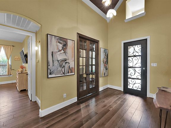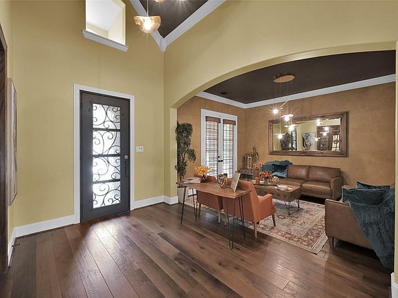 Welcome to Creekside Park, where timeless elegance meets modern luxury. This beautiful home comes fully furnished! From the moment you enter, you’re greeted by a serene seating area designed for relaxation & a sophisticated private wine room featuring an onyx bar, desk, and custom bookshelf. The inviting family room showcases a stunning stone fireplace & a wall of butt-glass windows that frame breathtaking views of the private backyard oasis. The oversized primary suite is a true sanctuary of elegance and class, offering a spa-inspired bathroom and refined finishes. The gourmet kitchen delights with an upgraded island crafted from whiskey staves, dual Sub-Zero wine fridges, perfect for the entertainer. Step outside to enjoy the sparkling pool, spa, & newly roofed pergola ideal for gatherings. With 6 bedrooms, 5.5 baths, a game & media room, and over $350K in furnishings & upgrades, this home is nestled in a top-rated school district near Creekside Park’s lakes, parks, & restaurants.